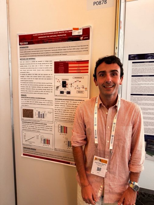 Our DC Javier Olmos, recruited at SCINUS, presented his research at the 32nd Annual Congress of the European Society of Gene and Cell Therapy (ESGCT), held in Seville, Spain from October 7-10, 2025. His poster focused on the development of a GMP-compliant closed manufacturing protocol for HEK293 cells using the Osilaris bioreactor from Scinus Cell Expansion B.V.